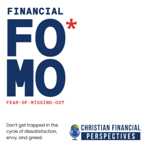 Are you constantly chasing the next big investment opportunity? Never feeling content with your current financial situation, financial, FOMO, or the fear of missing out can trap us in a cycle of dissatisfaction, envy, and greed. In this episode, we’ll expose the dangers of this mindset and uncover biblical truths that lead to true contentment in Christ no matter our circumstances. Let’s get some perspective. Welcome to another episode of Christian Financial Perspectives. We’re so glad that you’ve joined us today as we dive into financial FOMO, and I don’t know if you’ve ever heard of the term FOMO before, it means fear of missing out, but then there is financial FOMO, which we’re going to get into. Bob has graciously put a definition into our outline. Financial FOMO reflects the psychological aspect of investing where individuals are influenced more by emotions and the fear of missing out on market returns than by objective numerical analysis.